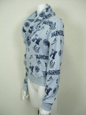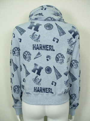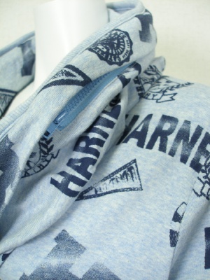 キャサリンハーネル好きにはお馴染みデザインのパーカが新柄で登場。フードは襟に内蔵されています。