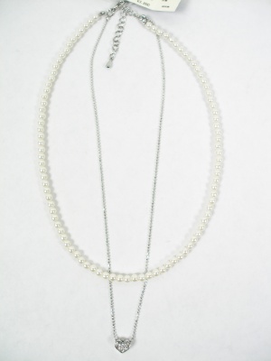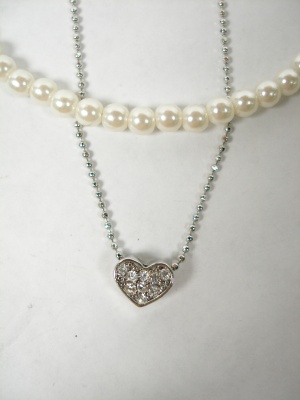 スワロフスキーを使用した小さなハートのネックレスと人工パールのネックレスが首の後ろでつながっています。(別々にはなりません)