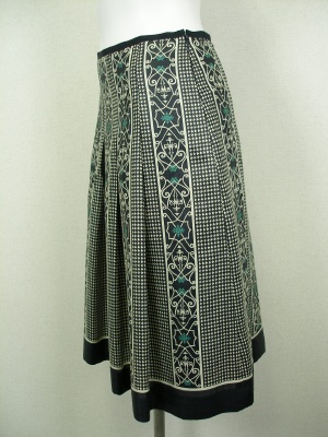 オリジナルプリントが他にはない魅力です。腰周りは縫い止めで広がりを抑えたデザインです。裏地付き。