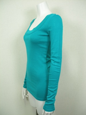 素肌にとても気持ちの良い素材のカットソーです。長めのお袖はくしゅくしゅさせて。