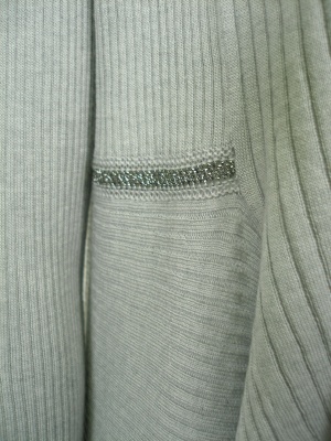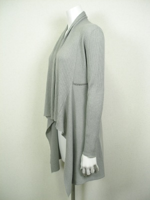 トロンとした柔らかい素材のドレープカーディガン。ウエストのラメ糸がさりげないポイントです。