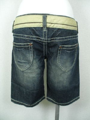 5「ファイブ」のハーフパンツ。デニムらしい風合いですが意外と穿きやすいのも魅力です。メーカーサイズ24〜27を、5号〜11号としました。