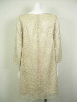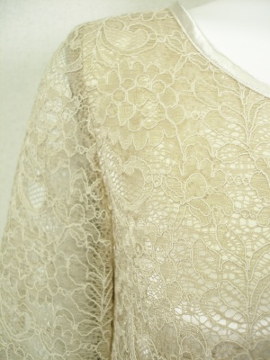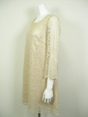 総レースのワンピース。身頃は裏地付きでお袖は透けます。Aラインでお袖もフレアー。