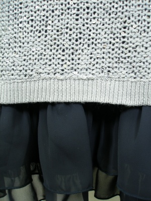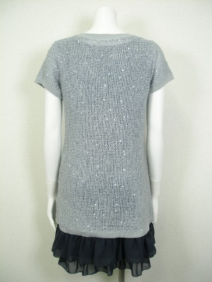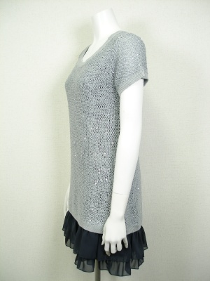 裾がシフォンのアンダードレスにスパンコールを散りばめたニットを重ねて。サイズの「着丈」はアンダードレスも含めた長さです。
