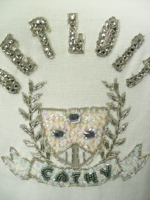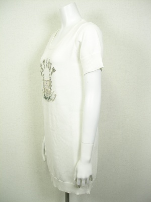 スパンコールのエンブレムがキラキラ可愛いニットワンピ。ストンとタイトなシルエットで広がりません。裏地なし。