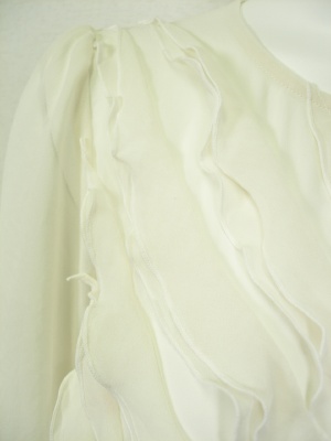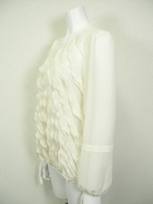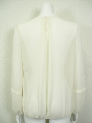 ほんのり透け感のあるブラウス。キャミソールやタンクトップと合わせて。裾と袖口にゴム入り。