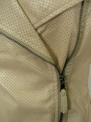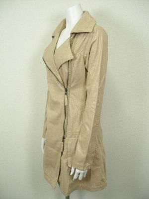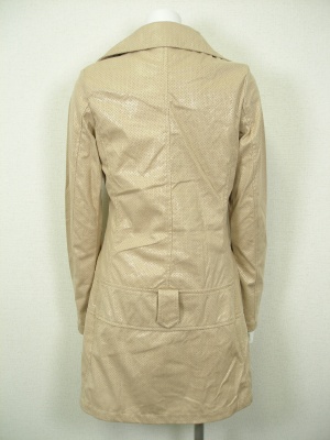 パンチングレザーのような合皮のコート。ライダース風のデザインで、身頃のみ裏地付き。