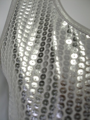 水着にも使用される生地にスパンコールの箔プリント。こちらは少し長め丈で、同じシリーズの普通丈もございます。