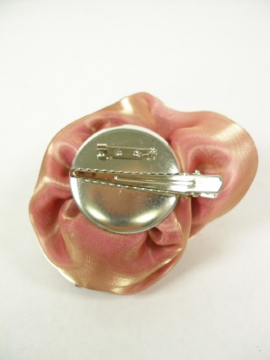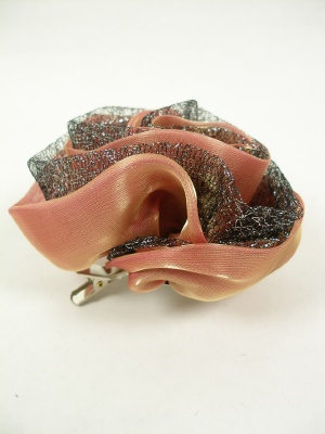 二つの素材を使った華やかなコサージュ。クリップ付き。
