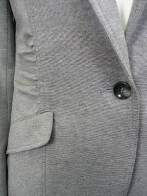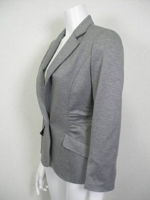 ウエストシェイプした細身のテーラードジャケット。さりげないギャザー使いがほっそり見せてくれます。