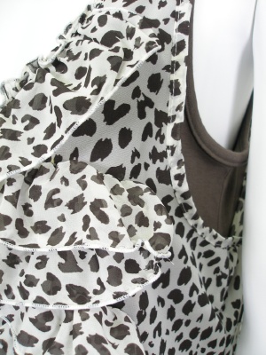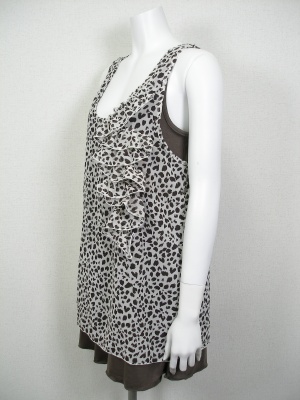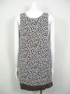 無地カットソーにアニマル柄のブラウスを重ねて。インナーとは縫いつけてあります。