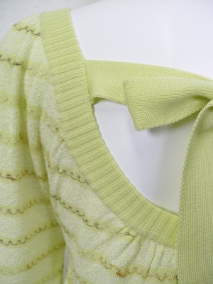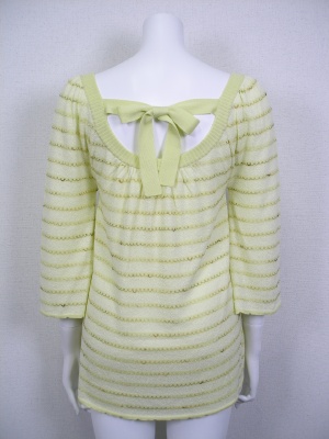 前後に広く開いたラウンドネックで、後ろはリボン結びに。タンクトップやタートルなどを重ね着してもカワイイ。