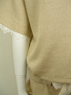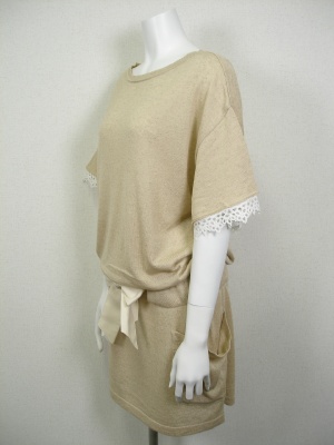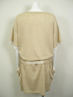 ナチュラルな素材感が魅力のニットワンピース。ローウエストに別素材のリボンベルトを通してあり、お好みでブラウジングします。裏地なし。