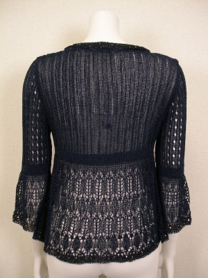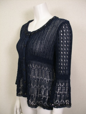 レーシーなカーディガン。程よいゆとりがありますが、コンパクトにまとまるのでワンピースに合わせてもバランス良い。