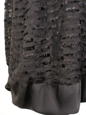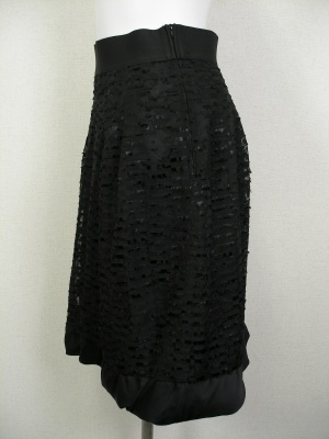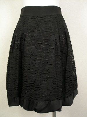 表情のある素材のバルーンスカート。裾は柔らかい別素材を使ってボリュームを抑えています。