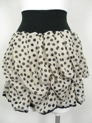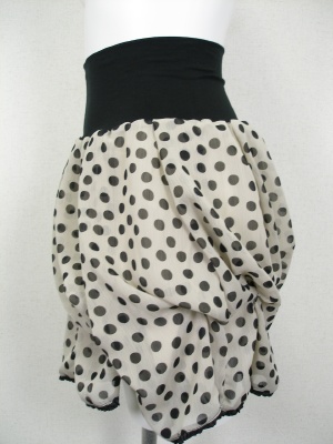 ひねりを加えたバルーンスカート。ウエストはストレッチ素材でフィットします。裏地付き。特集