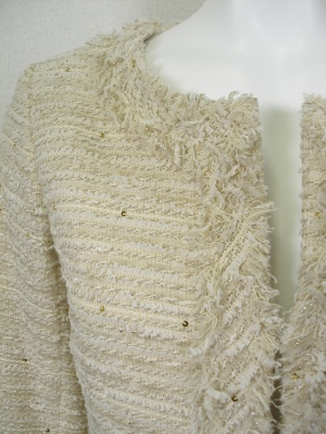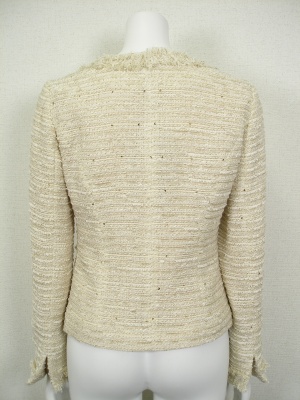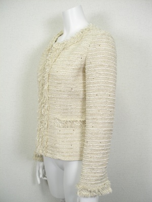 ラメ糸とスパンコールを控えめに使用したジャケット。裏地付きで、スーツになるスカートもございます。