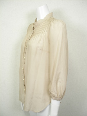 薄く上質な素材を使ったブラウス。ふんわりさせたお袖やピンタックがフェミニン。やや透けます。