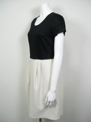 スッキリしたデザインのコンビネーションワンピース。ジャケットを羽織ってお出かけ用にも。