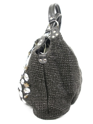 キラキラの装飾をたっぷり付けたメッシュバッグ。クタッとしているのでショルダーとして持っても決まります。
