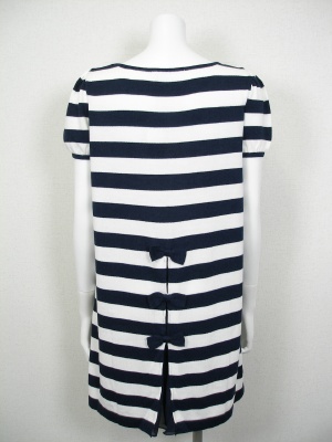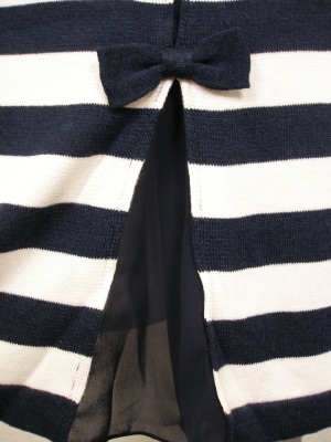 後ろに3つ並んだリボンが可愛いニットワンピース。リボンの内側からシフォンがチラリとのぞきます。裏地なし。