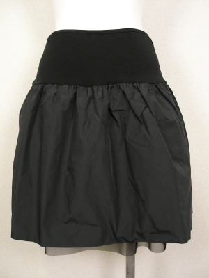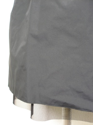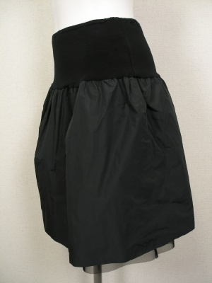 ハリのあるポリエステルにギャザーを寄せてボリュームを出しています。リバーシブルなので、裏返すとチュールのディアードスカートとなります。ウエストはゴム。