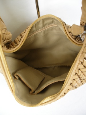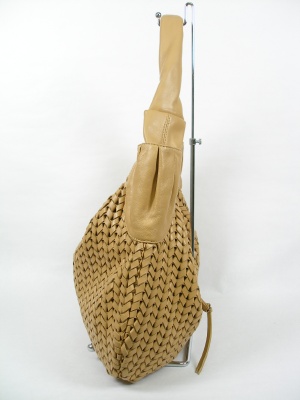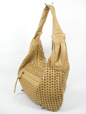 羊革なので柔らかく、クタッとしたデザイン。マチはありませんが、クロワッサン型で使いやすいバッグです。