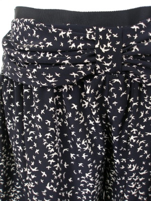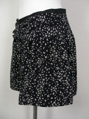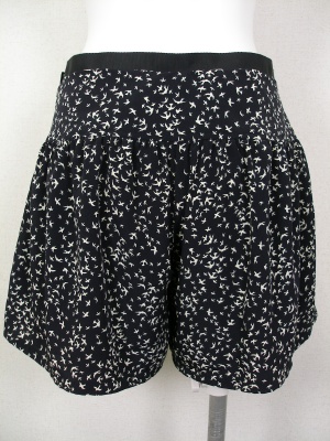 たくさんの鳥が飛んでいるような柄のショートパンツ。ギャザー入りなのでスカートのようにも見えます。裏地付き。