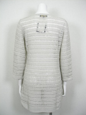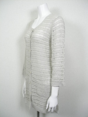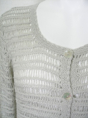 春から夏にかけて重宝するクロシェのカーディガン。サラリと羽織るだけで季節感が出ます。