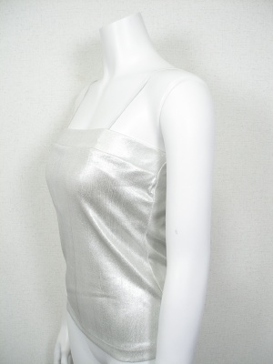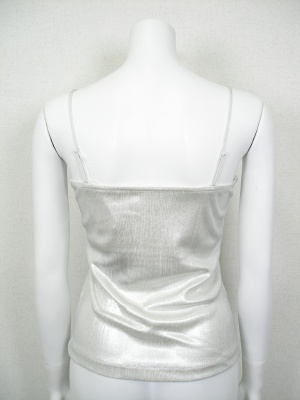 ラメプリントのキャミソール。幅広ゴムで胸元にフィットします。ストラップを外したらベアトップに。