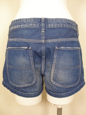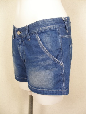 ライトオンスデニムのショートパンツ。インディゴ染めですが、色落ちした明るいブルーです。