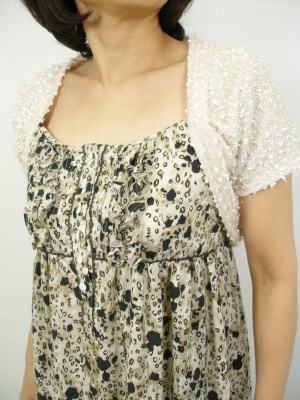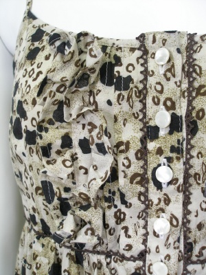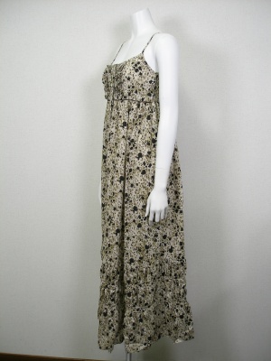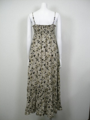 優しいアニマル柄のマキシ丈ワンピース。バストの後ろはシャーリングで、胸元にフィットします。裏地付き。