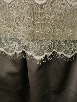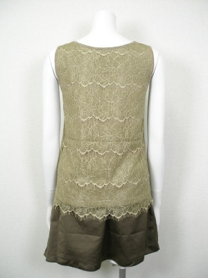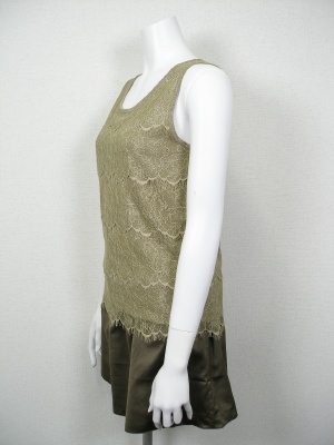 ラメニットにレースを重ねたトップスと、別素材のスカートの2点セット。合わせるとワンピースのようです。スカートは裏地付き。