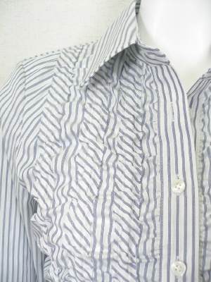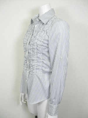 シルク・綿素材なので上品な光沢があります。ギャザーがスッキリ見せてくれるキレイめシャツです。