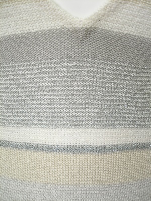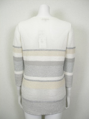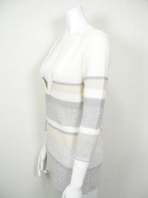 シャリッとした肌触りの深Vネックニット。淡い色合いのボーダー柄で、ボーダーの一部にラメ糸を使用。