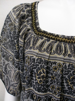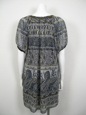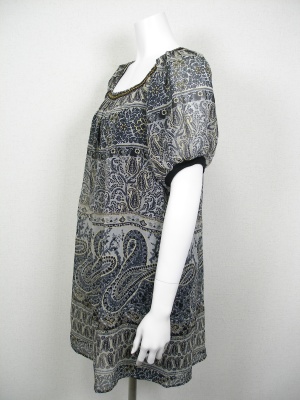 ペイズリーと花柄のシフォンワンピース。身頃にはレーヨンの裏地が付いていて、お袖はほんのり透けます。