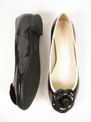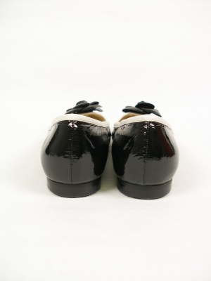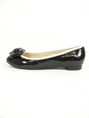 トゥのカメリアが可愛い、エナメルのバレエシューズ。