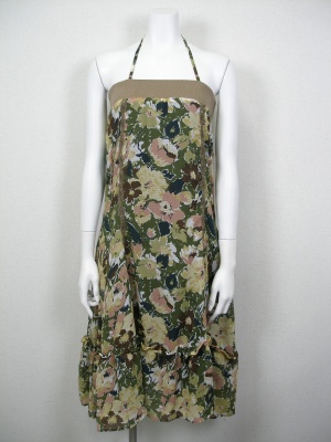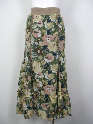 マキシ丈のロングスカート。取り外せるストラップを付けてワンピースにしてもカワイイ!ウエストはゴム、裏地付き。