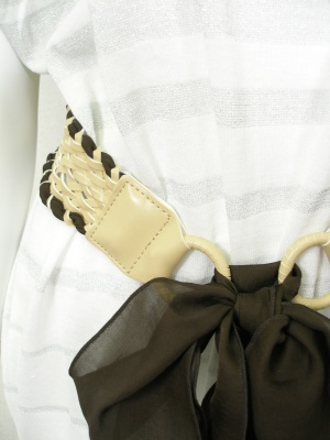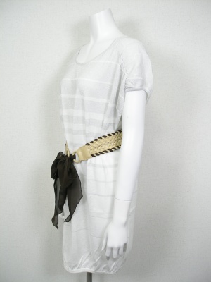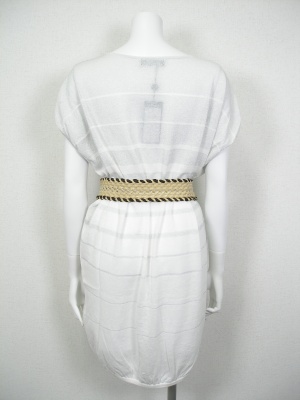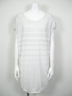 白×シルバーラメのボーダーニット。薄手なので透けます。(裏地なし)付属のベルトでウエストマークして。