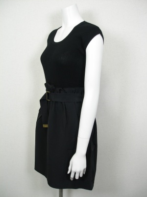 トップはリブニットで、スカートとベルトはグログラン(綿60%・ナイロン40%)。ハイウエストのワンピースです。