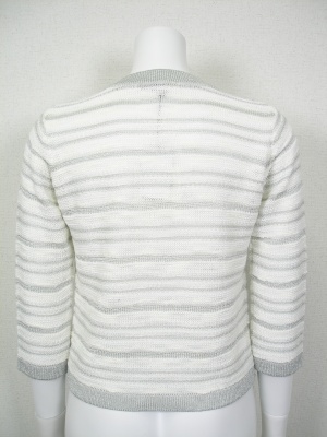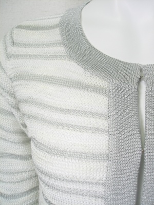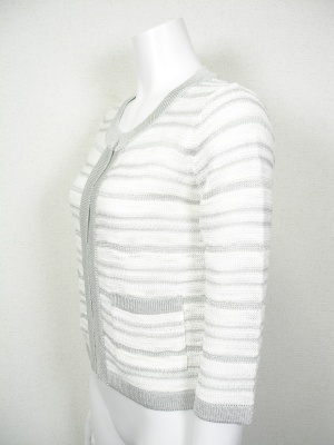 ジャケットのようなニットカーディガン。白にラメボーダー。裏地なし。