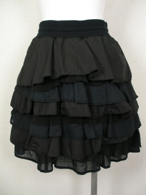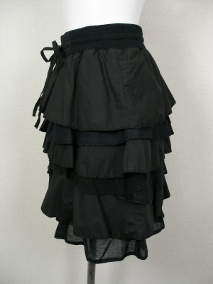 ややハリのある素材、透け感のある素材、メッシュ素材を重ねたティアードスカート。ウエストはゴムで紐も通してあります。