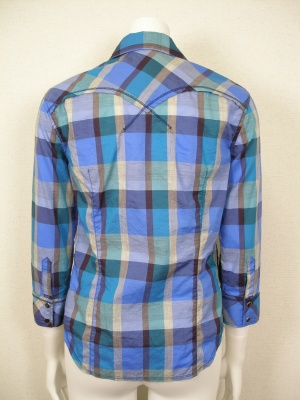 洗いざらしで着たいカジュアルなシャツ。ボタンを閉じて着る場合、細身なのでバストが大きめの方は胸がキツイかもしれません。前を開けて羽織りにしてもいいですね。