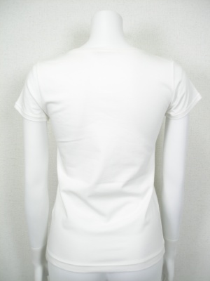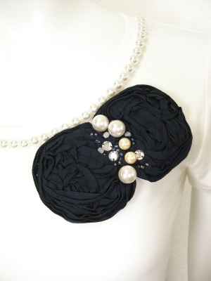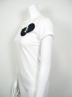 大きめパールと立体感のあるコサージュがカワイイTシャツ。ストレッチの効いた素材です。