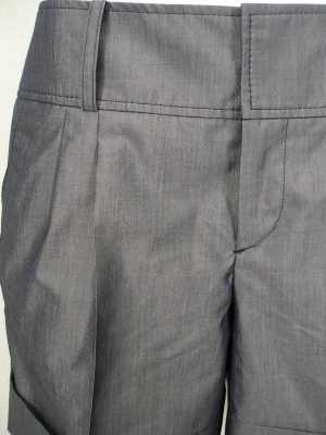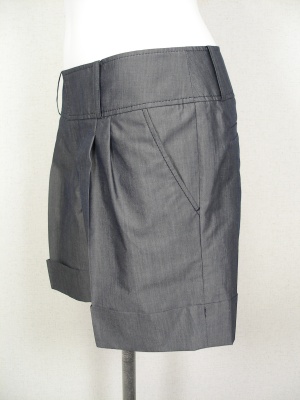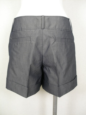 パリッとした素材のショートパンツ。やや光沢があり、センタープレスにダブルの裾でキレイめな印象です。裏地なし。