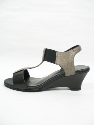 足首で支えるラクな履き心地のサンダル。足首のストラップの黒い部分はゴムです。
