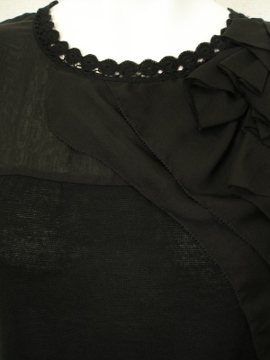 綿ニットで、胸元とフリルはシルク。あまり透けませんが一枚で着るならインナーが必要です。裏地なし。