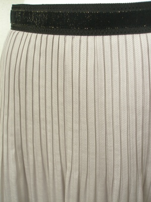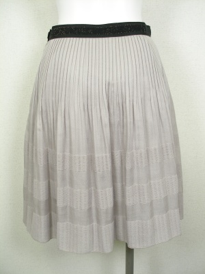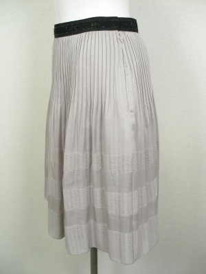 腰はプリーツで裾はプリーツを消しているので、自然に広がります。ほんのり透ける軽い素材です。裏地付き。