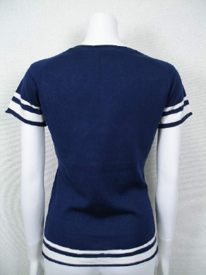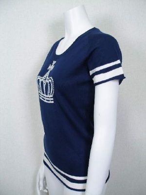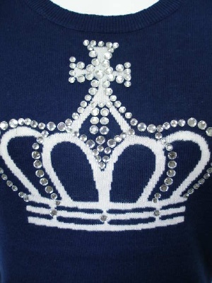 ネイビー×白の配色がマリンな雰囲気のニット。ラインストーンで飾ったクラウンがポイント。