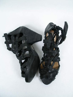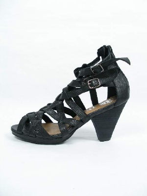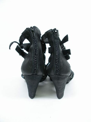 ベルト使いが特徴的なグラディエーターサンダル。足首には3本のストラップがありますが、後ろファスナーなので脱ぎ履きはラクですよ。